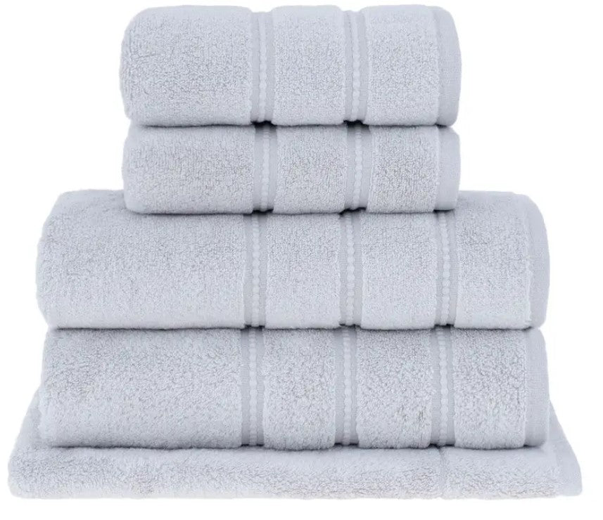 Designed with refined triple detailing along the border, this 4-piece towel set brings a subtle charm and a timeless gray tone that fits effortlessly into any bathroom aesthetic. Crafted using Air Cotton technology, the set offers high performance with exceptional absorbency, a super-voluminous feel, and an ultra-soft, airy texture.